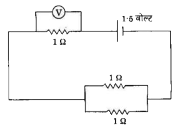 - ऊपर दिए गए परिपथ में वोल्ट्मीटर V में पाठ्यांक क्या होगा? (सभी प्रतिर...