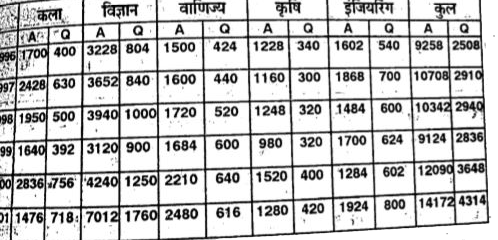 - किसी परीक्षा में विभिन्न विषयो में शामिल (A) तथा उत्तीर्ण (Q) होनेवाले...