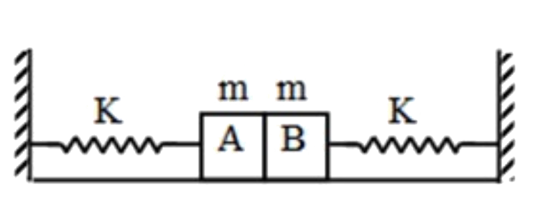 - Two blocks each of mass m are connected with springs each of force con...