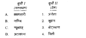 - सूची I को सूची II से सुमेलित कजिये और सूचियों के नीचे दिए कू...