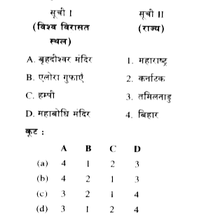 - सूची I को सूची II से सुमेलित कीजिए और सूचियों के नीचे दिए गए कूट का प्...