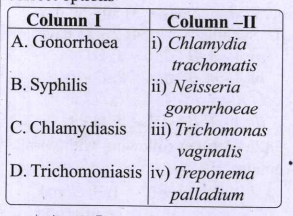 - Match the following colum I and II for STDs and its carrier and select...
