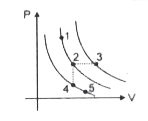 - एक गैस को ग्राफ में डोट द्वारा प्रदर्शित पाँच अवस्थाओं में से गुजारा ज...