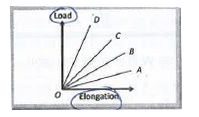 - समान पदार्थ के चार तार का भार Vs लम्बाई वृद्धि ग्राफ प्रदर्शित है। अधि...