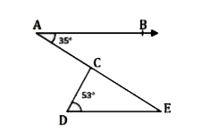 - चित्र में यदि "AB"||"DE", angleBAC=35^(@),angleCDE=53^(@) तो angleDCE ...