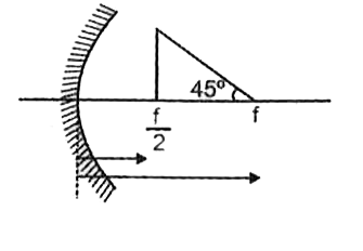 एक तार एक समकोण त्रिभुज की आकृति में मोड़ा गया है तथा चित्रानुसार फोकस दूरी f के अवतल दर्पण के सामने रखा जाता है। चार विकल्पों में प्रदर्शित चित्रों में से कौनसा मुड़े हुये तार के प्रतिबिम्ब की आकृति को गुणात्मक रूप से प्रदर्शित करता है।