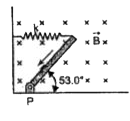 A thin uniform rod of negligible mass and length 0.200 m is attached to the floor by a frictionless hinge at point Pas shown in the figure. A horizontal spring with force contant `k=4.80Nm^(-1)` connects to the other end of the rod to a vertical wall. The rod is in a uniform magnetic field B=0.340 T directed into the plane of the figure. There is current I=6.50 A in the rod, in the direction shown.