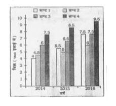 - नीचे दिए गए दण्ड चित्र में मोबाइल के चार ब्राण्डों की 3 वर्षो की बिक्र...