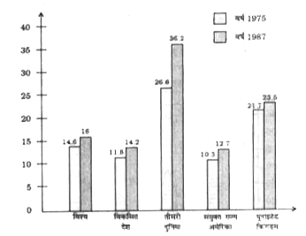 - निम्नलिखित बार-ग्राफ का अध्ययन करे। बार-ग्राफ में वर्ष 1975 से 1987 त...