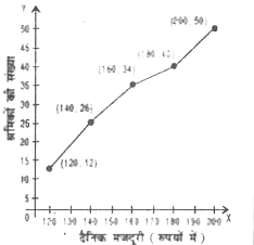 - निम्न लेखाचित्र में, एक फैक्ट्री 150 श्रमिकों की दैनिक मजदूरी को दर्शा...