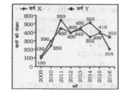 - नीचे दिए गए रेखा चित्र में वर्ष 2009 से 2016 तक 2 कक्षाओं X तथा Y में ...