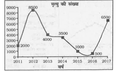 - यह रेखा ग्राफ एक विशिष्ट राज्य में रेल दुर्घटनाओं के कारण होने वाली मौ...
