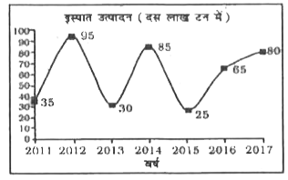 - यह रेखा ग्राफ एक विशिष्ट देश के इस्पात के उत्पादन को दर्शाता है। इस आर...