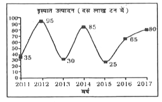 - यह रेखा ग्राफ एक विशिष्ट देश के इस्पात के उत्पादन को दर्शाता है। इस आर...
