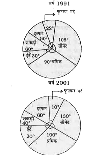 - एक घर के निर्माण में विभिन्न शीर्षो पर व्यय दिखाने वाले पाई-चार्ट का अ...