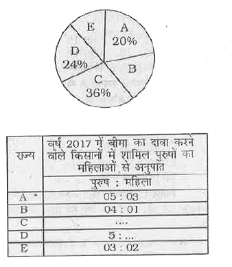 - निम्नलिखित पाई-चार्ट तालिका में देश के 5 राज्यों A,B,C,D और E से जुड़े ...