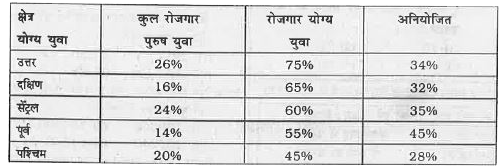 - निम्न तालिका में किसी राज्य के पाँच क्षेत्रो में रोजगार योग्य युवाओ की...