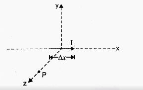 - An element Deltavecl=Deltaxhati is placed at the origin as shown in fi...
