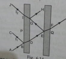 - Two glass pates P and Q are held close and parallel to each other.A na...