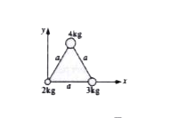 - Three masses 2 kg, 3 kg and 4 kg are lying on the vertices of an equil...