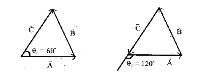 - Given that A=B=C. If vecA+vecB=vecC then the angle between vecA and ve...