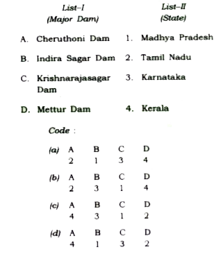 Match List-I with List-II and select the correct answer using the code given below the Lists: