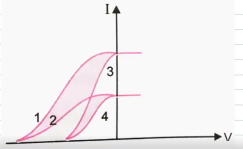 - The graph of Fig. shows the variation of photoelectric current (I) ver...