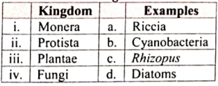 - Match the following : The correct match is