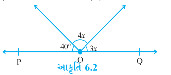 - આકૃતિ 6.2 માં, રેખા PQ પર બિંદુ O આવેલું છે. POQ રેખા છે. તો x નું મૂલ...