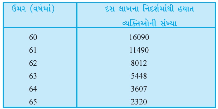 - માર્ત્યતાનું કોષ્ટક અહી આપ્યું છે. : આ જાણકારીને આધારે '60 વર્ષ ઉમરની'...