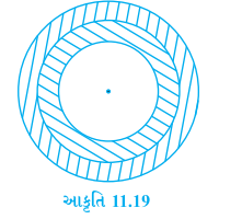 - આકૃતિ 11.19 માં બતાવ્યા પ્રમાણે, એક તિરંદાજી નિશાનમાં ત્રણ સમકેન્દ્રી...
