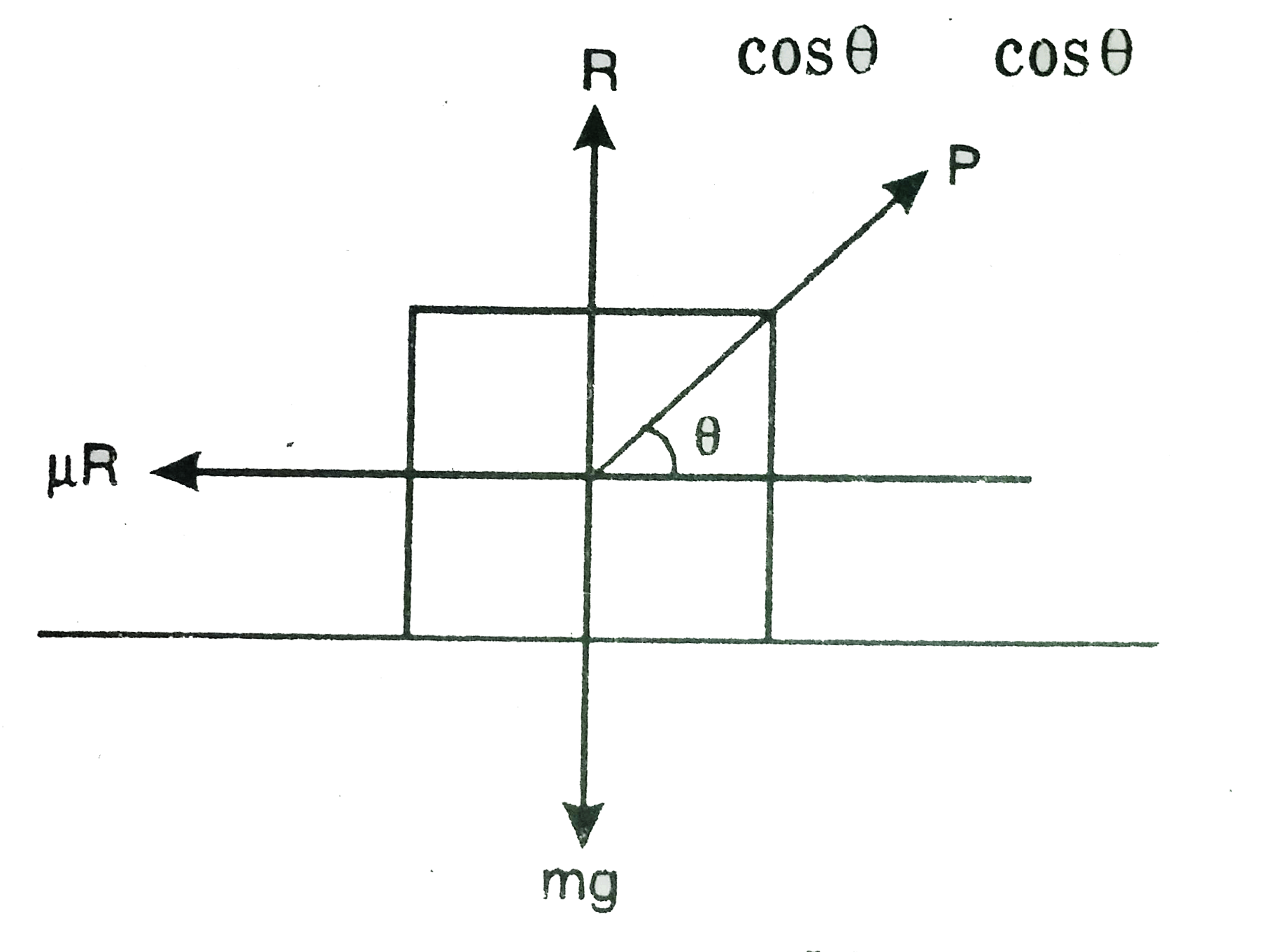 Let P bet he force applied to it an angle `theta` From the free body diagram,