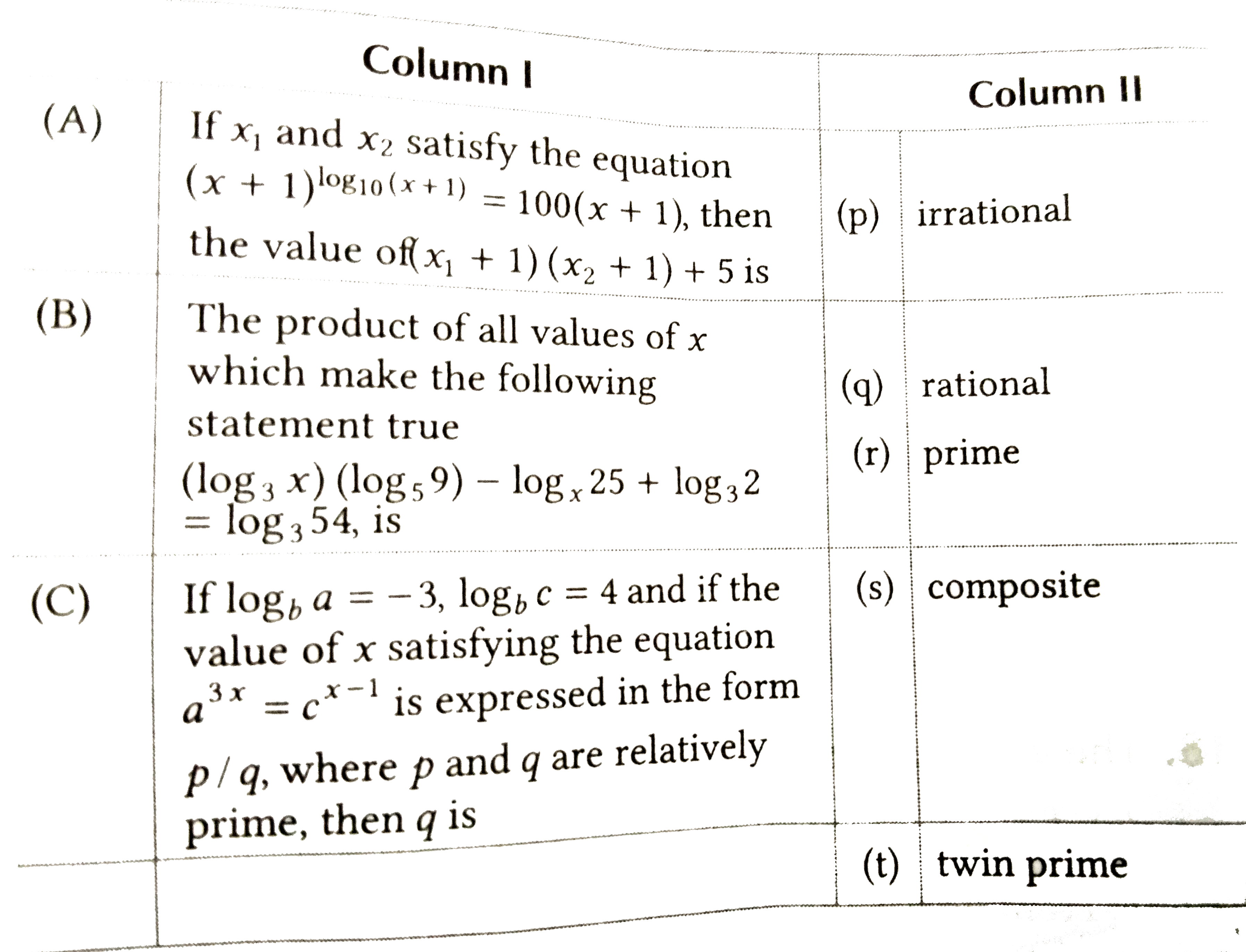 Match the items in Columns- I with Column-II and choose the correct option.