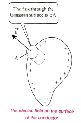 We know that the electric field has amgniyude `sigma/epsilon_0` just outside the conductor.s surface. Consider a small cylindrical Gassian surface, as shown in the figure. One half of this cylinder is embedded inside the conductor.