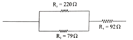 `:." Parallel combination of 220"Omega "and 79" Omega" in seris with 92 "Omega" `.