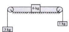 - Three blocks of masses 3kg, 6kg and 1kg are connected by a string pass...