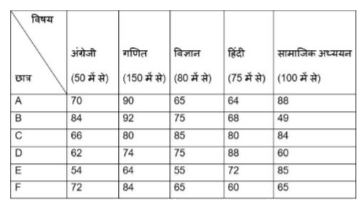 - दी गई तालिका का अध्ययन करें और प्रश्न का उत्तर दें। पांच विषयों में...