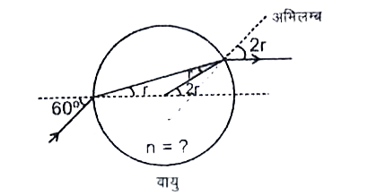 - काँच के गोले का अपवर्तनांक निकाले यदि निर्गत किरण क्षैतिज होती है।