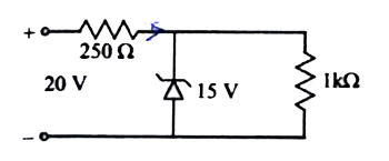 - 15 V के बराबर भंजक वोल्टता वाले एक जेनर डायोड का उपयोग चित्रानुसार वोल...