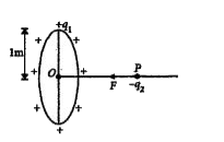 - A thin fixed of radius 1 metre has a positive charge 1xx10^-5 coulomb ...