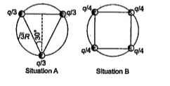 - Assertion: Three equal charges are situated on a circle of radius r su...