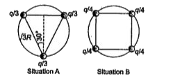 - Assertion: Three equal charges are situated on a circle of radius r su...