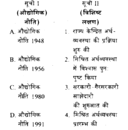 1. सूची I को सूची II से सुमेलित कीजिए और सूचियों के नीचे दिए गए कूट का प्...