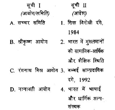 - सूची I को सूची II से सुमेलित कीजिए और सूचियों के नीचे दिए गए कूट का प्...
