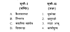 - सूची-I को सूची-II के साथ सुमेलित कीजिए और सूचियों के नीचे दिए गए कूट क...