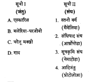 - सूची I को सूची II के साथ सुमेलित कीजिए और सूचियों के नीचे दिये गये कूट...