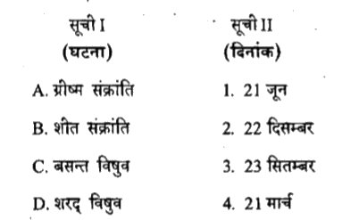 - सूची I को सूची II के साथ सुमेलित कीजिए और सूचियों के नीचे दिये गये कूट...