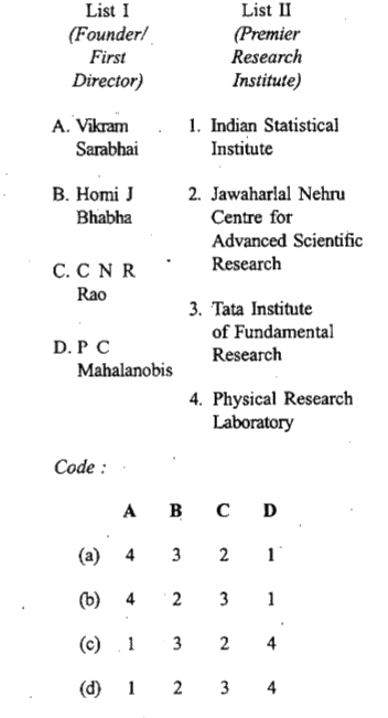 - सूची I को सूची II के साथ सुमेलित कीजिए और सूचियों के नीचे दिये गये कूट...