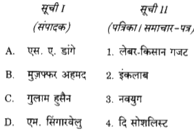 - सूची I को सूची II से सुमेलित कीजिए और सूचियों के नीचे दिए गए कूट का प्...