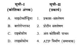 - सूची-I को सूची-II के साथ सुमेलित कीजिए और सूचियों के नीचे दिए गए कूट क...